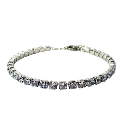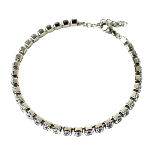 Náramek z nerezové oceli ve stříbrné barvě posázený zirkony vhodný pro každou příležitost.