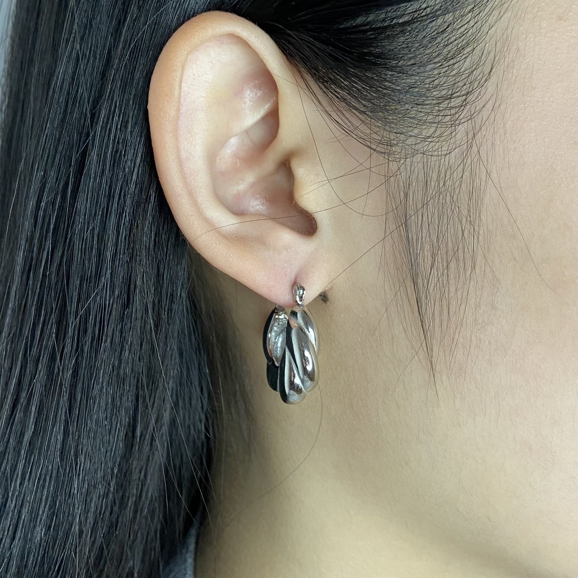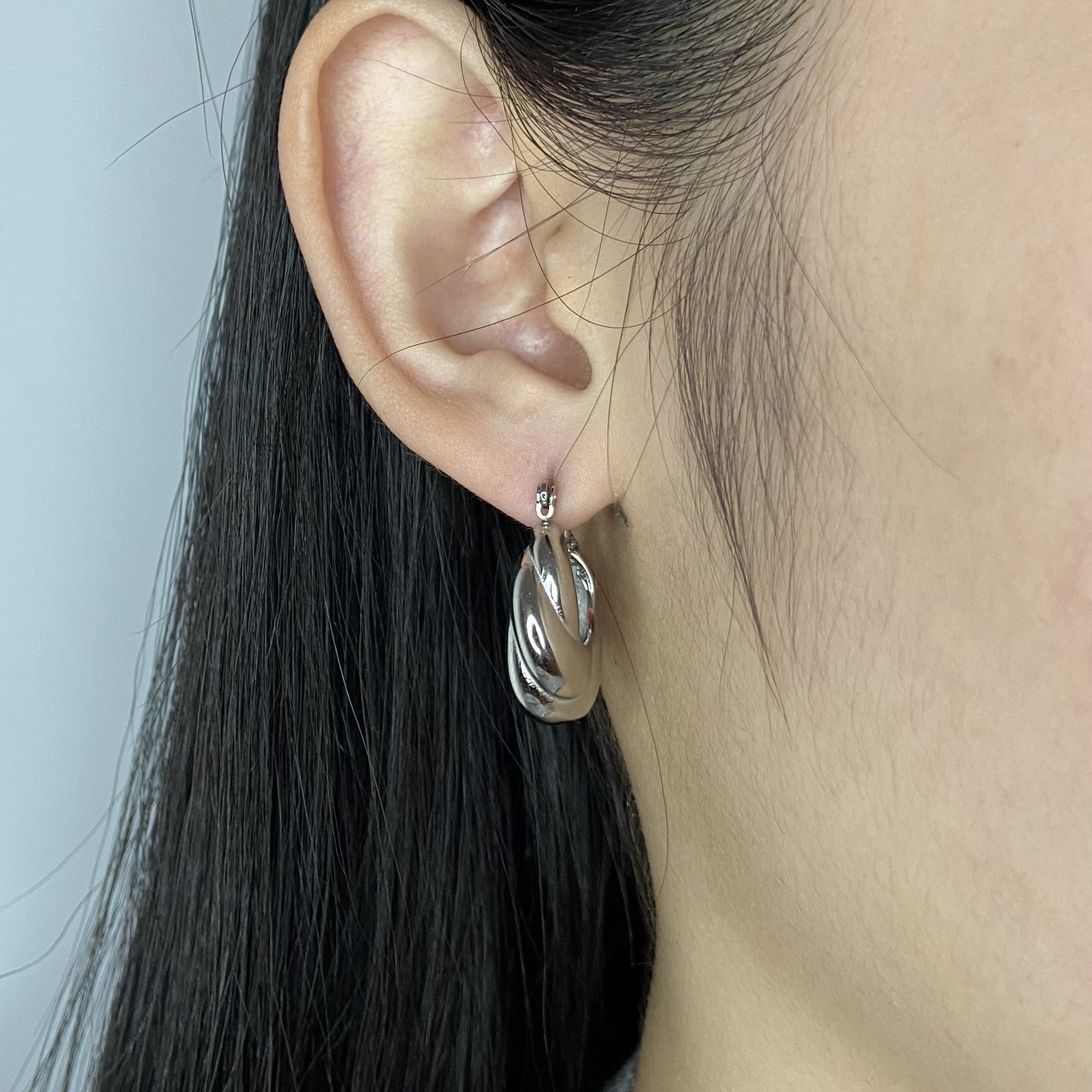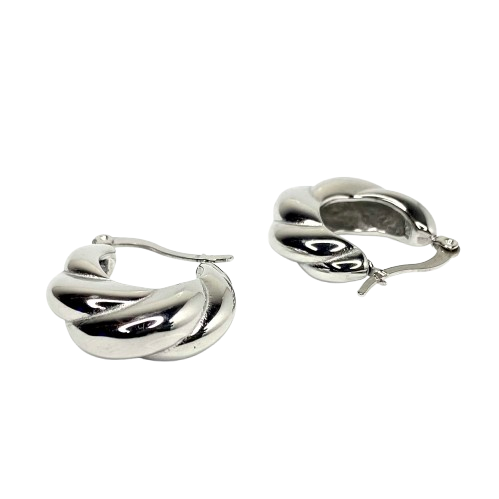 Vroubkované náušnice ve stříbrné barvě vhodné pro každodenní nošení.