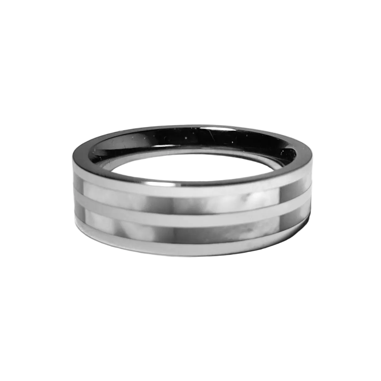 Prstýnek z nerezové oceli s perletí.
